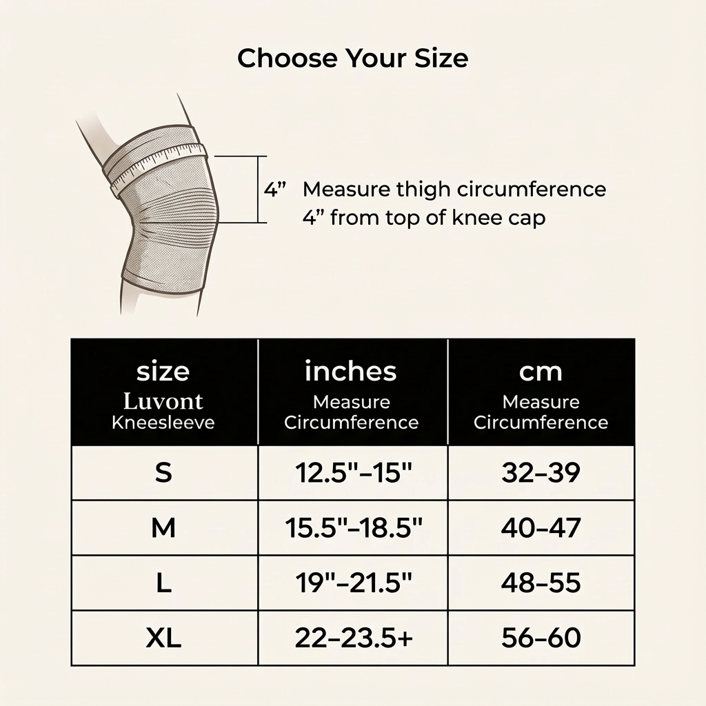 Measure thigh circumference 4" from top of knee cap Size Down For More Compression